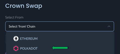 - Go to the Legacy Bridge - choose Polkadot from the drop down menu