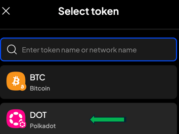- Select “DOT” Polkadot
