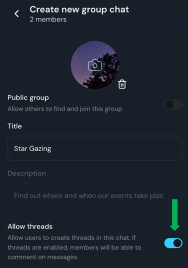 - Once you get to the page for naming your group, you have the option to Allow Threads.