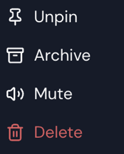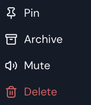 1. Right click (desktop) or click and hold (mobile) on a chat and this menu will pop up. Choose to pin or unpin a the chat.